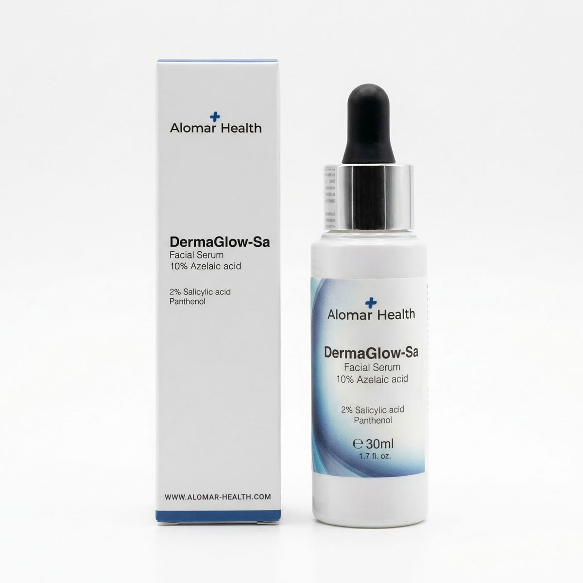 DermaGlow Serum combines 10% azelaic acid and 2% salicylic acid with soothing panthenol and brightening licorice extract. This powerful blend works to unclog pores, reduce inflammation, and even out skin tone. With regular use, it promotes a healthier, more balanced complexion that looks visibly clearer and feels refreshed.